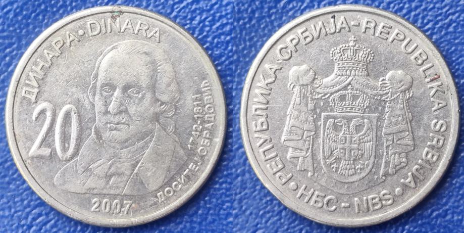 Serbia 20 dinara, 2007 265th Anniversary - Birth of Dositej Obradovic