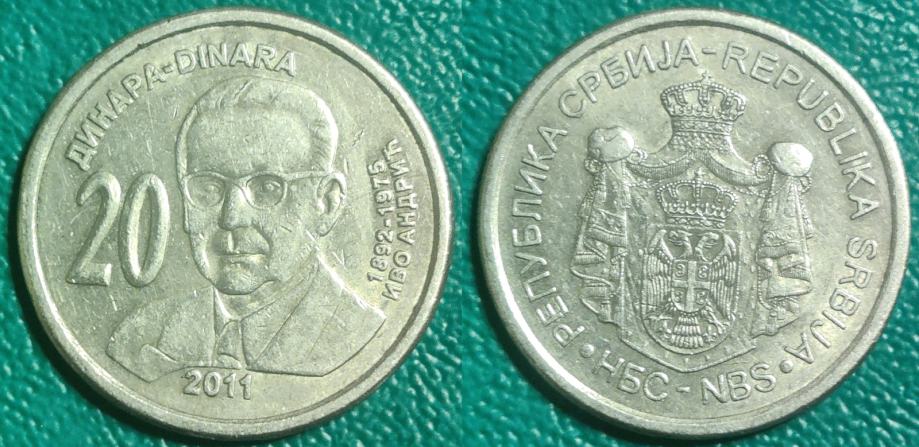 Serbia Serbia 20 dinara, 2011 Ivo Andrić Ivo Andrić ***/ 1,80 EURO !!!