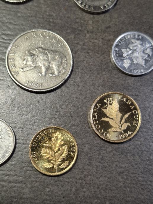 Set kovanica 1994god. od 1 lipe do 5 kuna.