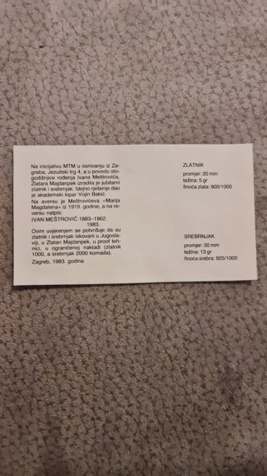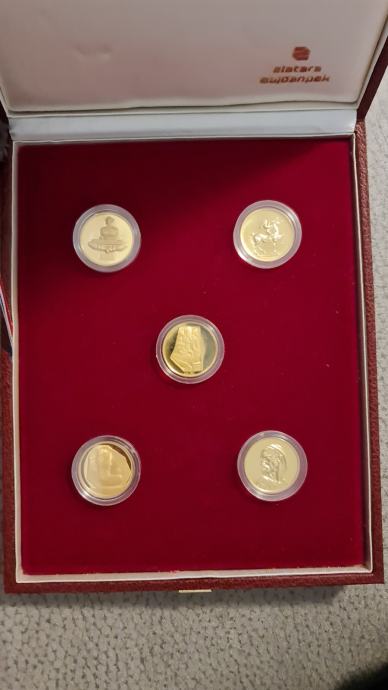 Prodajem potpuni set od 5 zlatnika iz 1983. godine, zlatarna Majdanpek izdala za stogodišnjicu rođenja Ivana Meštrovića. Navedena cijena je za set zlatnika. Imam i potpuni set srebrnjaka koji nije u cijeni.