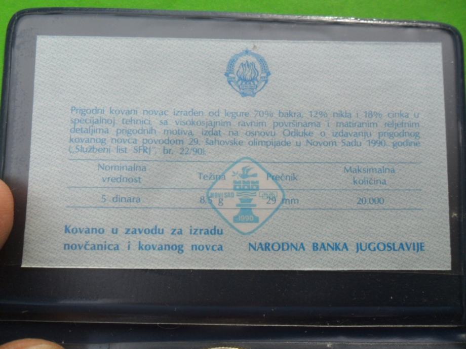 SFRJ - 5 Dinara 1990 - Šahovska olimpijada Novi Sad