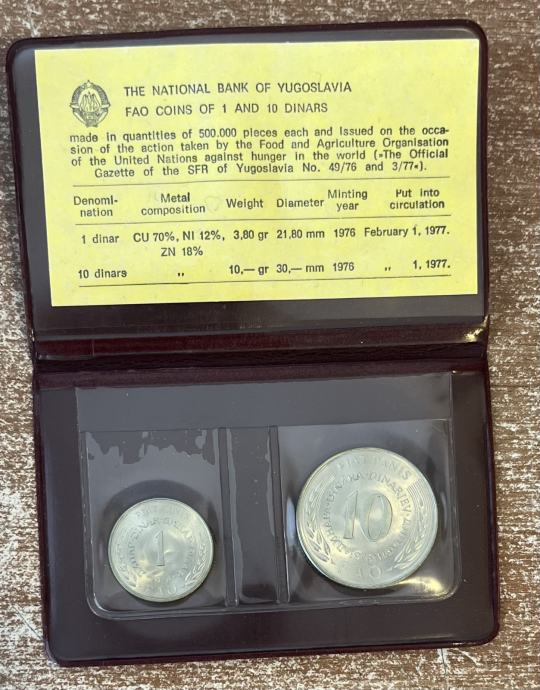SFRJ - FAO, DVIJE KOVANICE U ETUIU