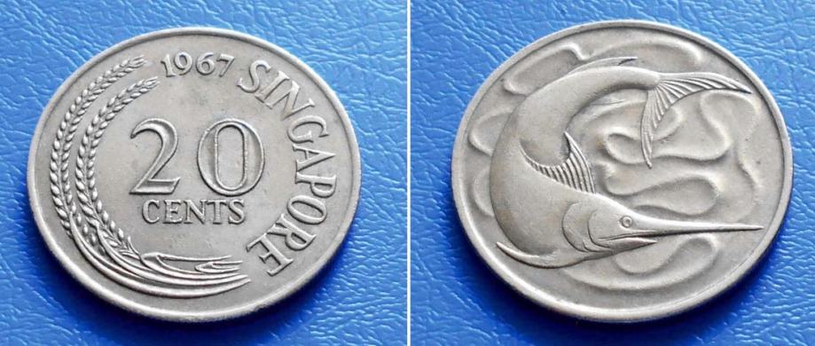 SINGAPUR SINGAPORE 20 CENTS 1967 KM. 4 - RIBA SABLJARKA