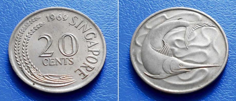 SINGAPUR SINGAPORE 20 CENTS 1969 KM. 4 - RIBA SABLJARKA