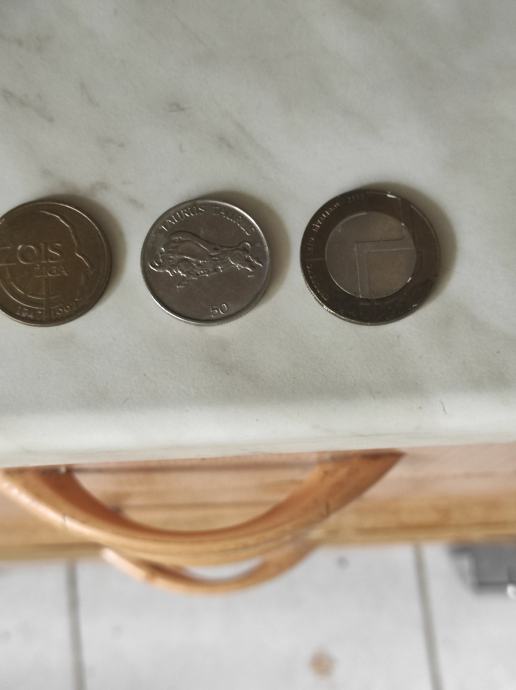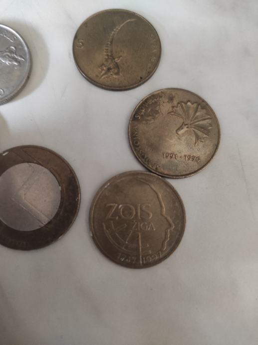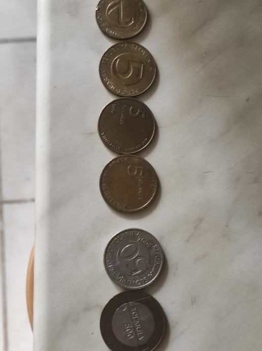 Šest kovanica od toga 4 -prigodne od 5 TOLARA,jedna je od 2 ,jedna od 500 i jedna od 50 TOLARA.Zanimljive su četiri kovanice od 5 TOLARA koje nisu bile u opticaju ,nego su prigodne kovanice,npr ŽIGA ZOIS 1997 ,pa DIVOKOZA iz 1994 ×2,i Samostalna Slovenija iz 1996 godine,tu su jos i Bik TAURUS 50 TOLARA,2 tolara Rustica i 500 tolara Europsko ljeto invalida .Za sve informacije nazovite na broj dolje upisan ili upit na Viber ili Njuskalo, a Šaljem POŠTOM ili TISKOM ili u dogovoru sa kupcem,bilo gdje,i Sloveniju ili drugdje.VIDI SLIKE!! CIJENA JE ZA SVE KOVANICE, A MOGUĆE KUPITI SAMO NEKE.Ove tri idu zajedno od 5 TOLARA.