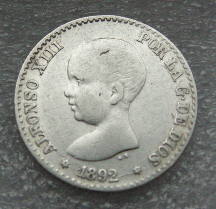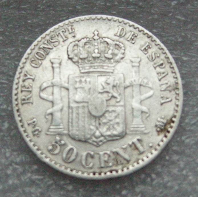 SPAIN 50 Centimos 1892