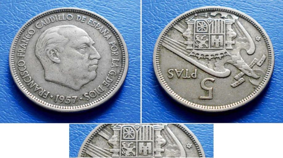 ŠPANJOLSKA SPAIN 5 PESETAS 1957 (58) KM: 786 - FRANCISCO FRANCO