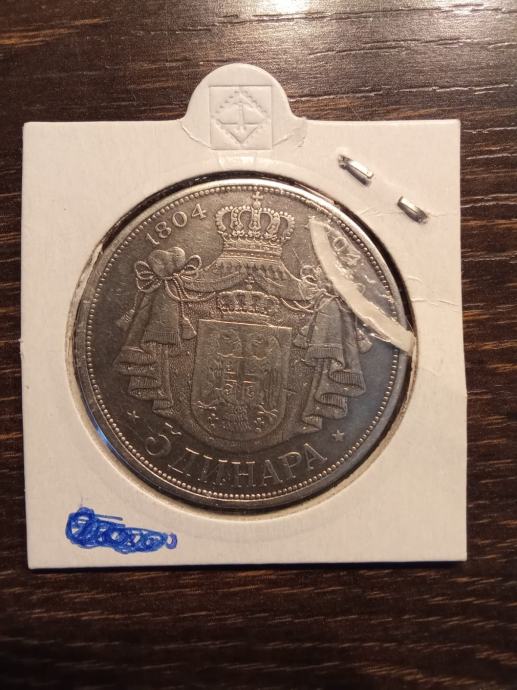 SRBIJA 5 DINARA 1904 " BOG SRBIJU CUVA"