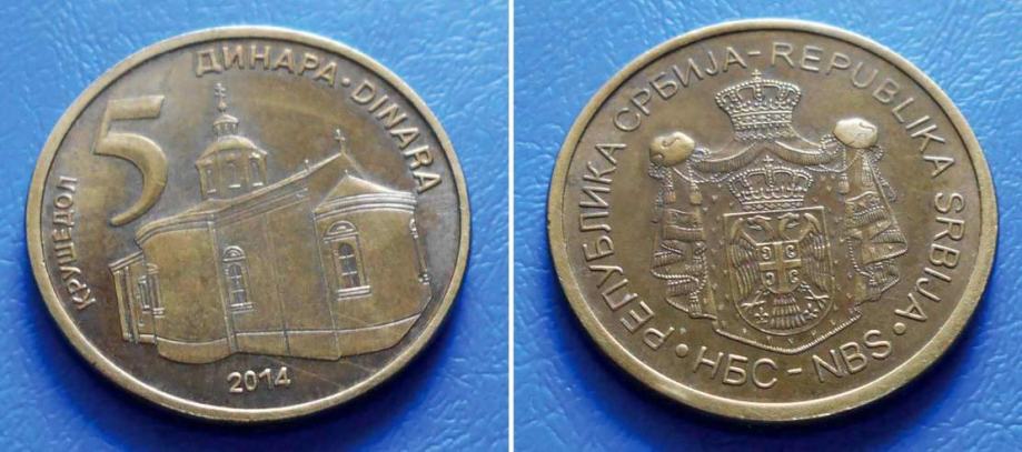 SRBIJA SERBIA 5 DINARA 2014 KM.56 - KRUŠEDOL