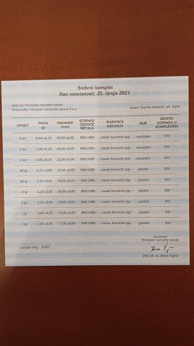 Srebreni komplet kuna "Dan neovisnosti 25.lipnja";