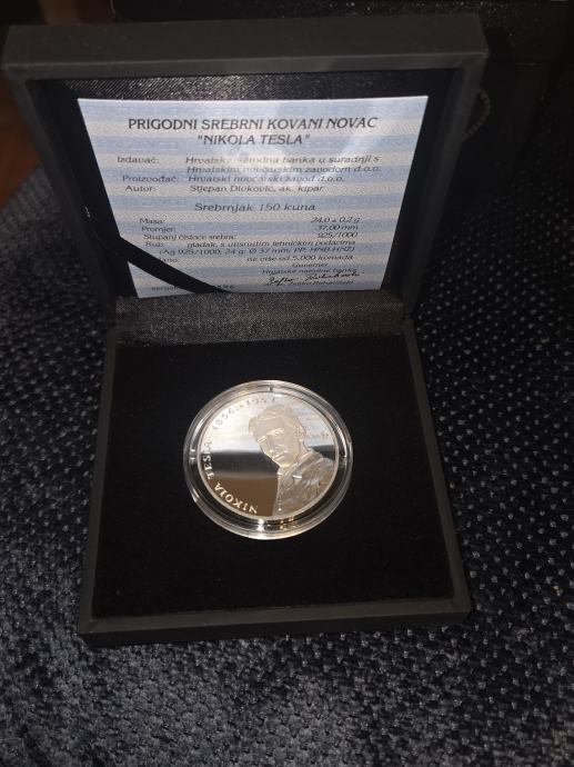 SREBRNJAK Nikola Tesla, u original kutiji, certifikat.