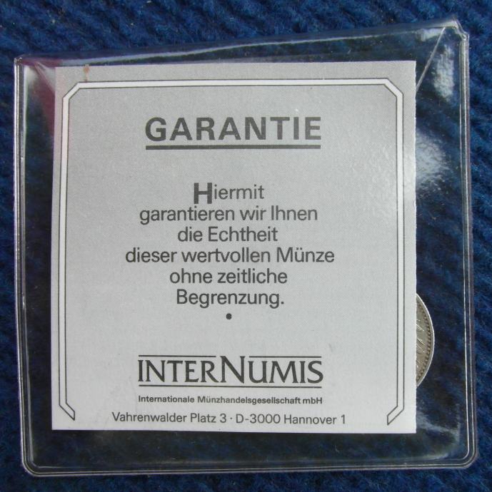 Kovanica je u plastičnom držaču kovanica zajedno sa certifikatom.
