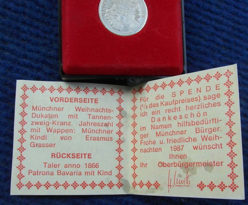 Srebrna kovanica Patrona Bavariae mit kind 1987