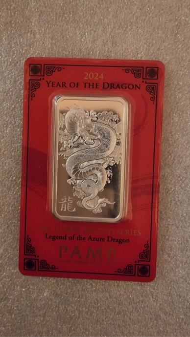 SREBRNA POLUGA 1oz (1unca) PAMP “Legend of the Azure Dragon” 2024.