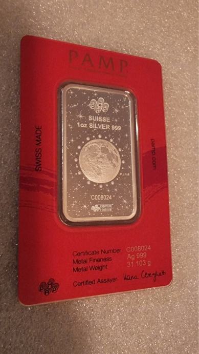 Investicijsko srebro, 999 silver, dolazi u originalnom pakiranju, Pamp Swiss.
