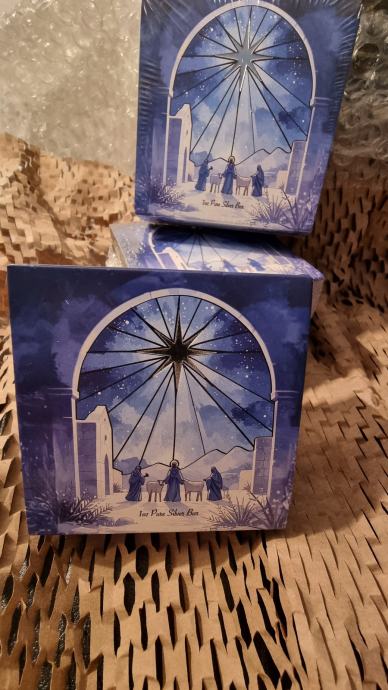 Kolekcionarska srebrna poluga s motivom jaslica (Nativity) u stilu vitraja, fine silver 999, 1 unca, 2025., Pamp Suisse, naklada od 5000 komada širom svijeta. Originalno pakiranje s certifikatom autentičnosti i prigodnom kutijom s magnetskim zatvaranjem.