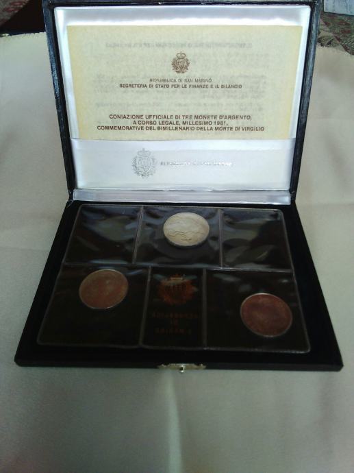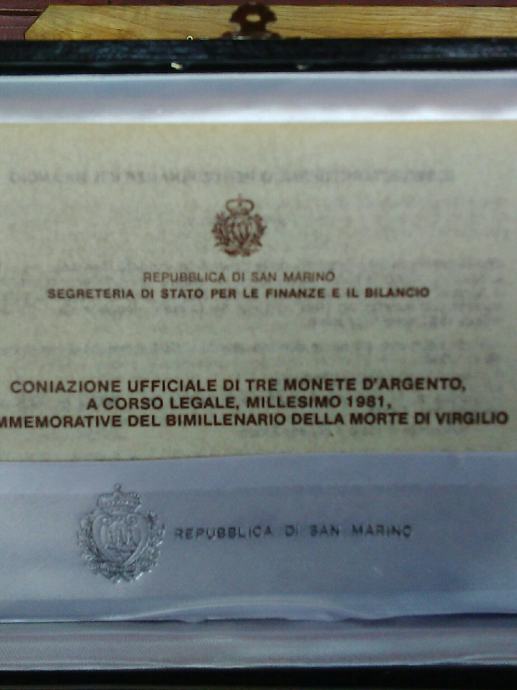 Srebrni novci od 1000 Lira dva od 500 Lira sa certifikatom Republika di San Marino 1981 g. 091 3779 273