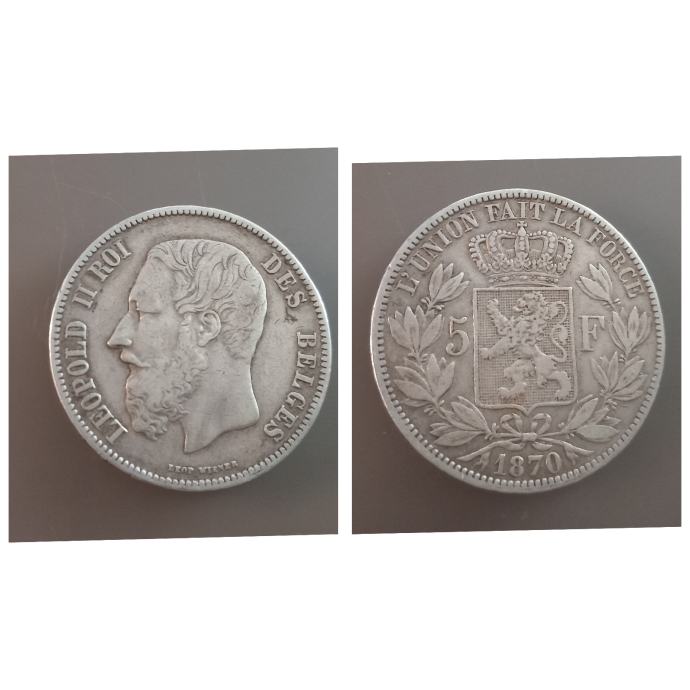 Belgium - 5 Francs 1875 - Leopold II - Srebro 0.9, 24,98 gr