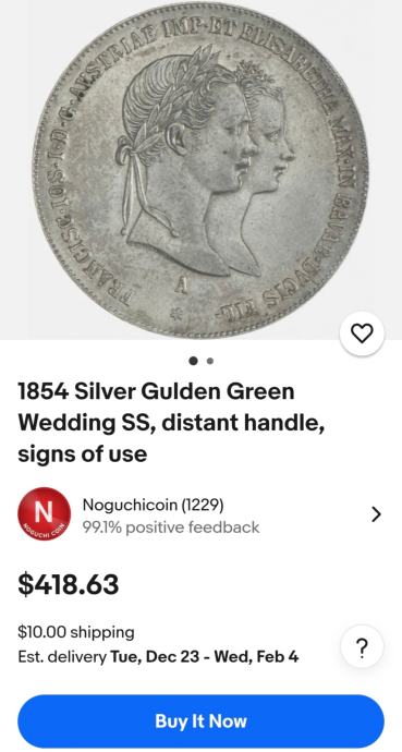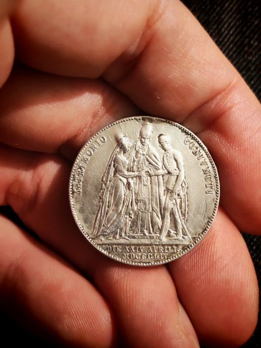 SREBRNJAK 1 Gulden 1854. - VJENČANJE FRANJE JOSIPA I ELIZABETE 'SISSY'