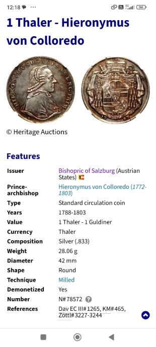 Srebrnjak 1 Thaler 1801 M Hieronymus von Colloredo
