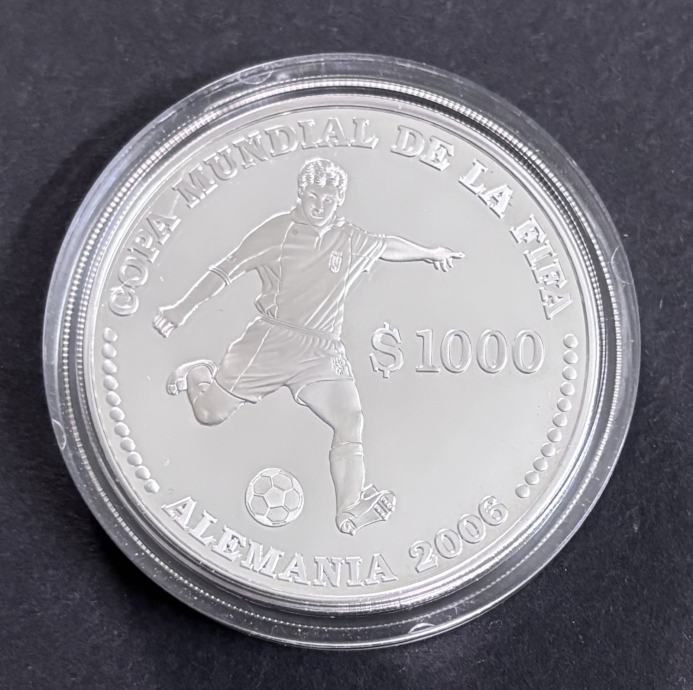 Prodajem srebrnu kovanicu nominale 1000 Pesos Uruguayos, izdanje Urugvaja iz 2003. godine, posvećenu XVIII Svjetskom prvenstvu u nogometu – Njemačka 2006.