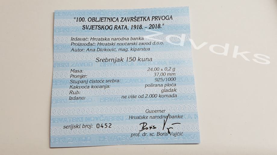 HRVATSKA, RATNI BROD, ZAVRŠETAK RATA, SREBRNJAK 150 KUNA 1918-2018