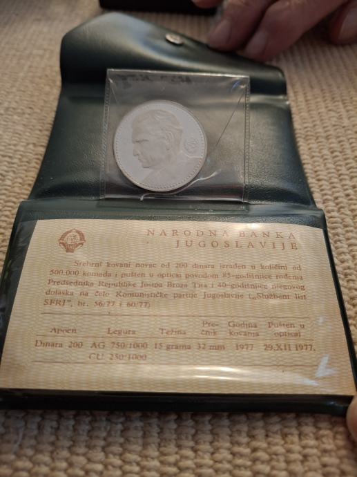 Srebrnjak 200 dinara iz 1977. s likom Tita