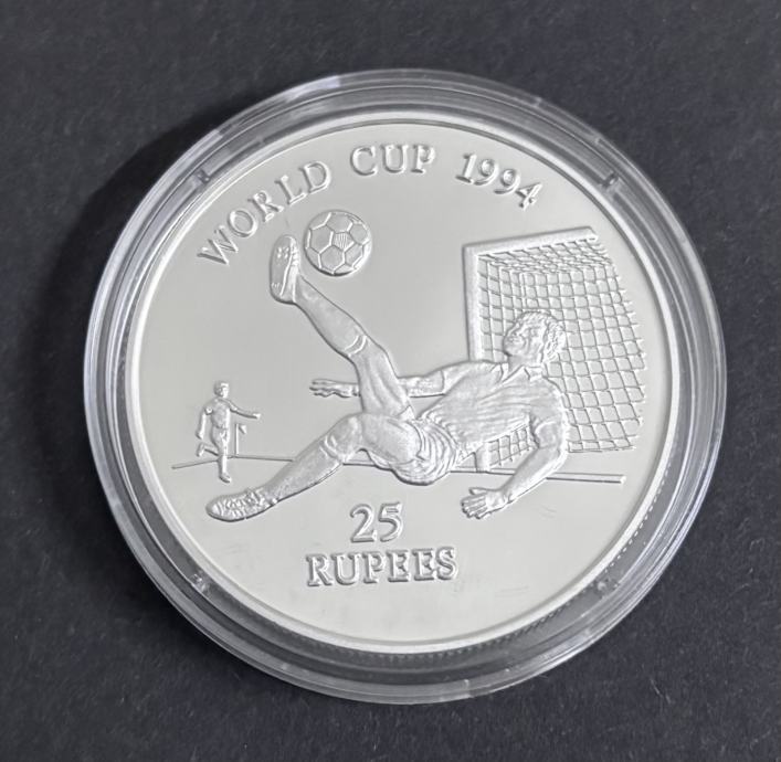 Srebro / Srebrnjak 25 Rupees 1993 – World Cup Football 1994