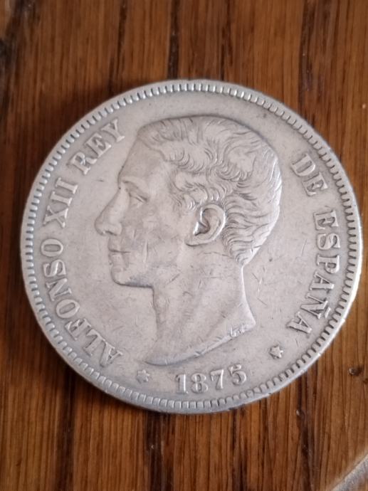 Srebrnjak 5 Pesetas 1875 Alfonso Xll