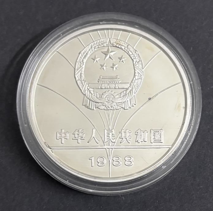 Prodajem srebrnu kovanicu 5 Yuan, izdanje Narodne Republike Kine iz 1988. godine, s motivom atletike – preponsko trčanje (Hurdling).