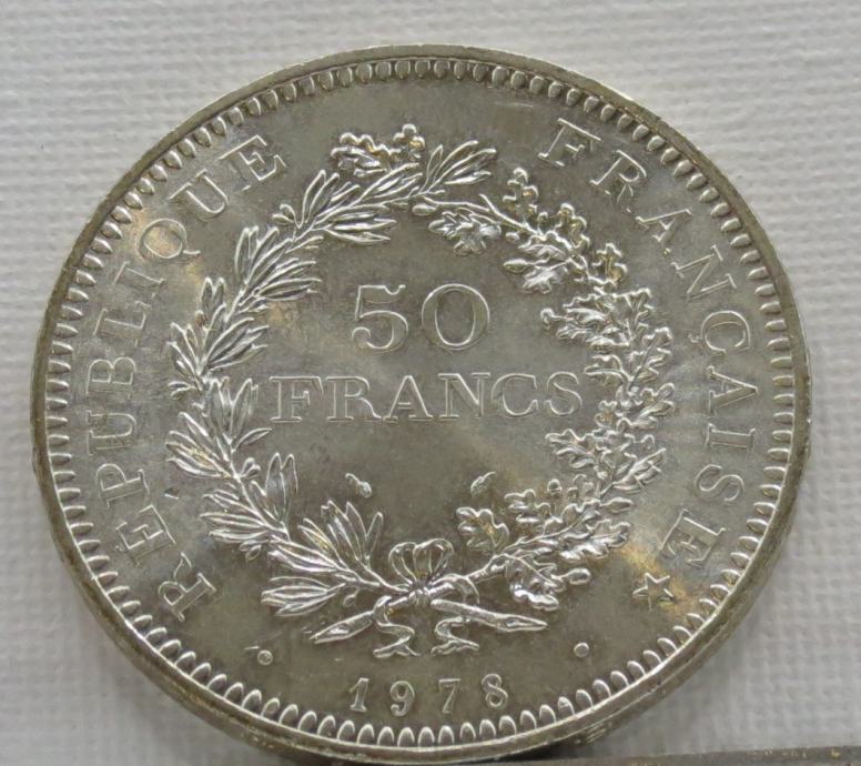 Srebrnjak 50 franaka iz 1978 godine, prometna kovanica iz Hercules groop.