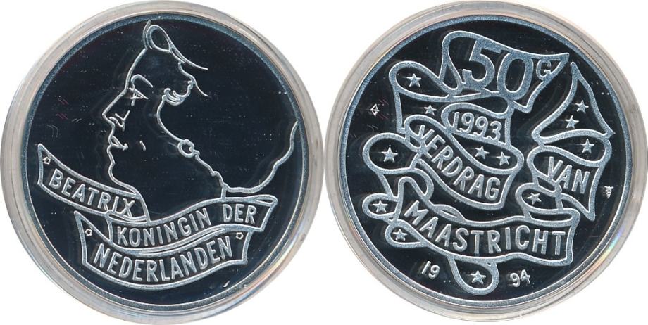 Srebrnjak 50 Gulden 1994 Verdrag van Maastricht PROOF