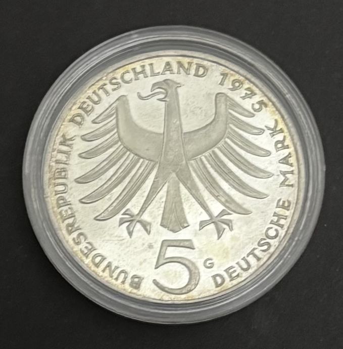 Srebro / Srebrnjak 5 Deutsche Mark 1975 – Albert Schweitzer