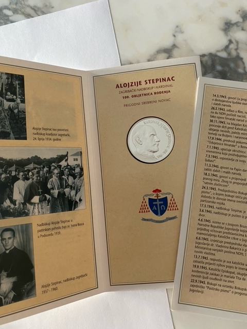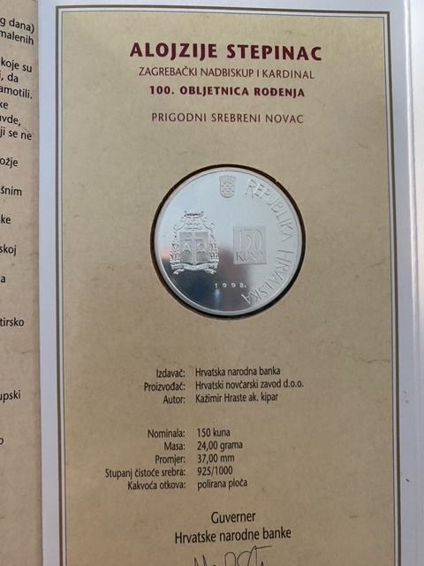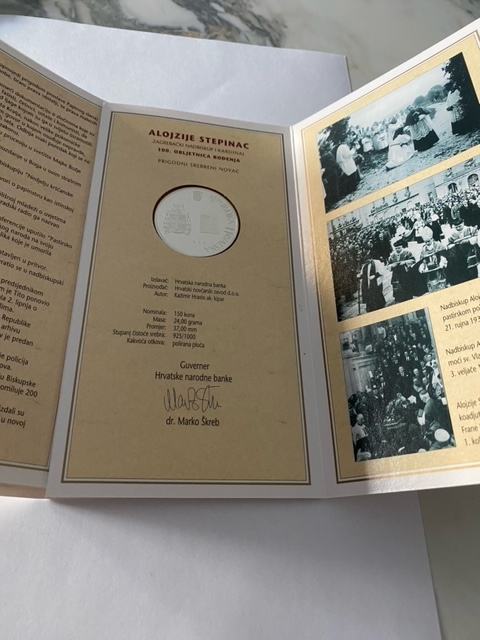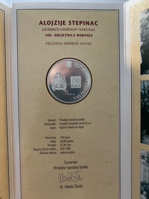 Srebrnjak 100. obljetnica rođenja kardinala Alojzija Stepinca nominale 150kn, stanje savršeno