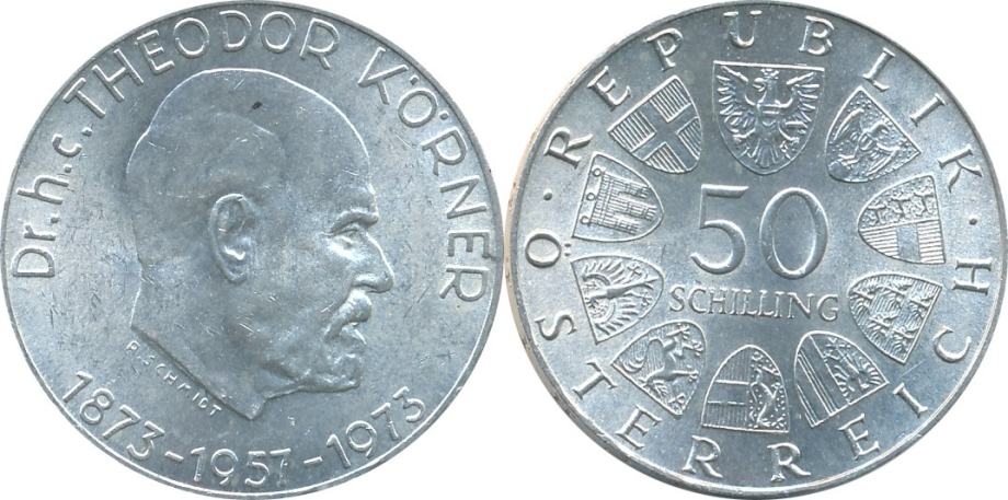 Srebrnjak Austrija 50 Schilling Dr. Theodor Körner 1973 BUNC