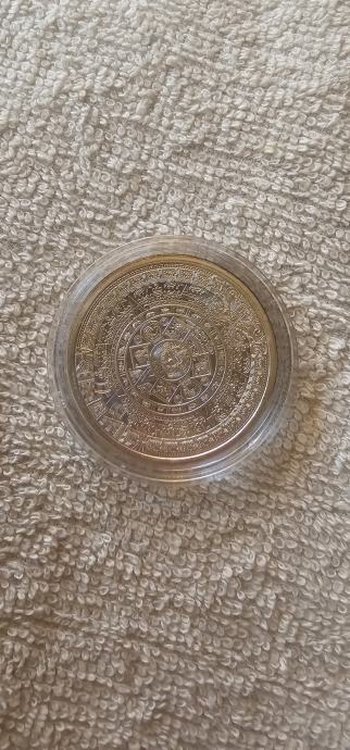 Aztečki kalendarski kamen, središnji dio ovog novčića, monumentalno je svjedočanstvo astečkog razumijevanja vremena i kozmologije. Trenutno se nalazi u Nacionalnom antropološkom muzeju u Mexico Cityju, ovaj kamen, težak preko 24 tone i promjera 3,6 metara, isklesan je oko 1500. godine. Služi kao povijesni podsjetnik na astečki pogled na kozmos i njihove sofisticirane sustave za praćenje vremena. Ovaj srebrni novčić donosi ovaj dio meksičke kulture ravno u ruke kolekcionara i investitora.