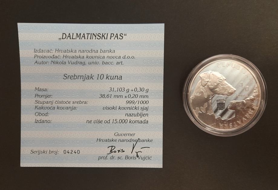 SREBRNJAK DALMATINSKI PAS 1 UNCA, CERTIFIKAT