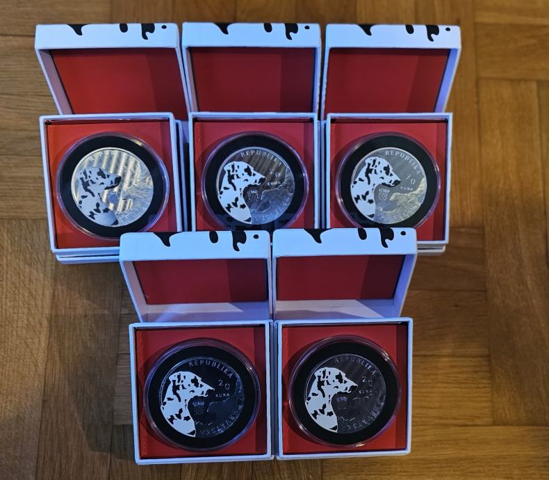 Srebrnjak Dalmatinski pas 5 unci obojani - kolekcija od 5 komada