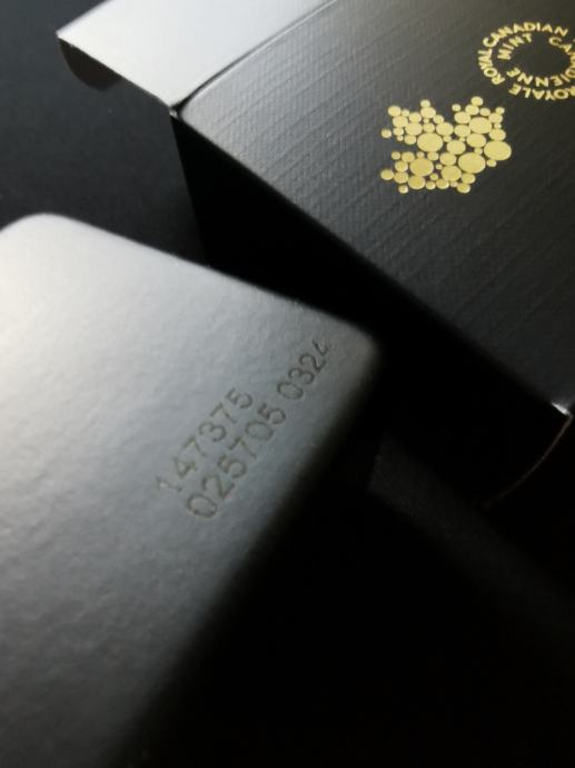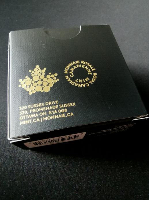 U originalnoj kutiji Kraljevske kanadske kovnice s certifikatom.