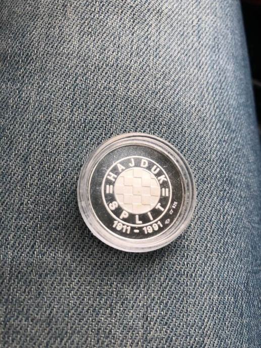 Prodajem srebrnjak Hajduka izrađen povodom 80 godina Hajduka 1911-1991 Srebro 925