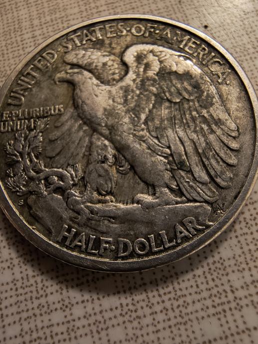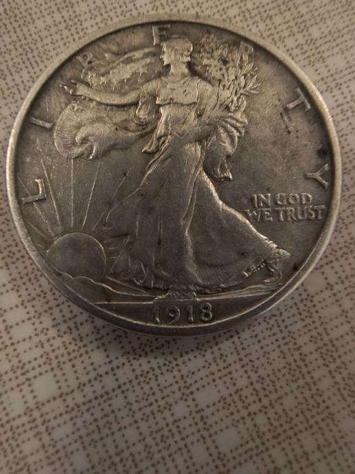 Srebrnjak half dolar ,walking liberty iz 1918 ,oznaka kovnice s ,dobro stanje.