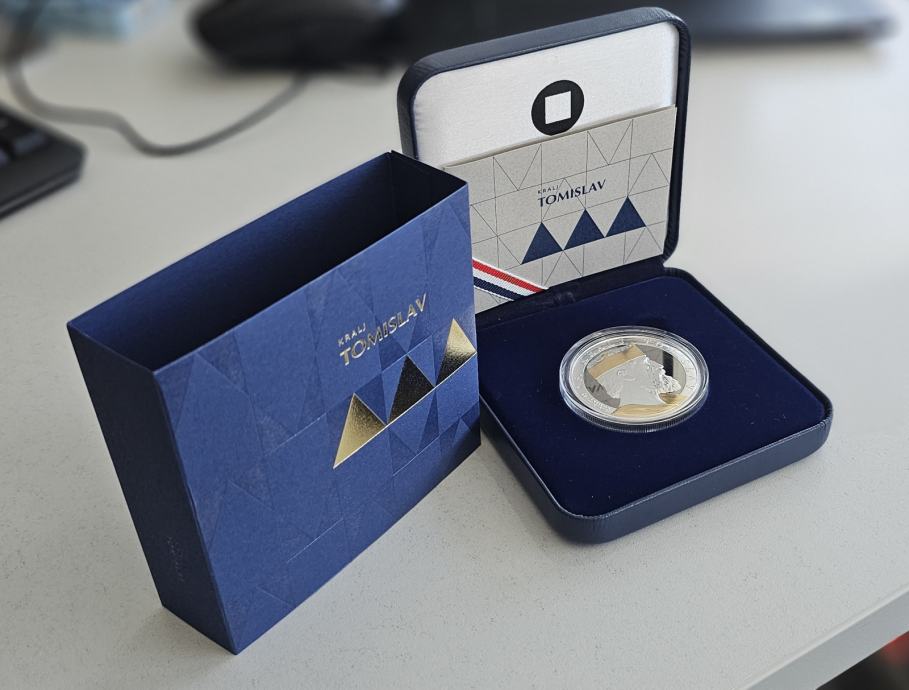 Hrvatska narodna banka u suradnji s Hrvatskom kovnicom novca izdala je srebrnjak „Kralj Tomislav“ mase dvije unce (62,207 grama). Srebrnjak nominalne vrijednosti 6 eura otkovan je u najvišoj kvaliteti otkova polirana ploča. Posebnosti ove kovanice doprinose obrade: djelomična pozlata i djelomična rutenijska presvlaka. Izrađen od srebra čistoće 999,9/1000 prigodan je dar za posebne prigode. Srebrnjak se izdaje u ograničenoj seriji od samo 500 primjeraka, a dolazi u kutiji s certifikatom koji potpisuje guverner Hrvatske narodne banke.