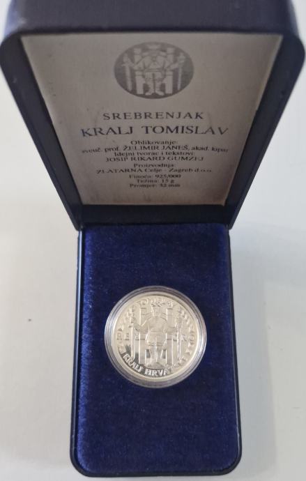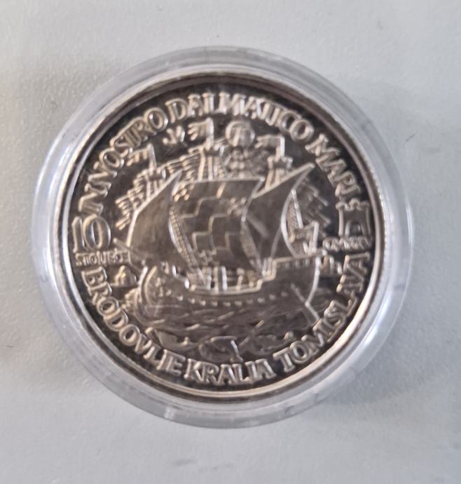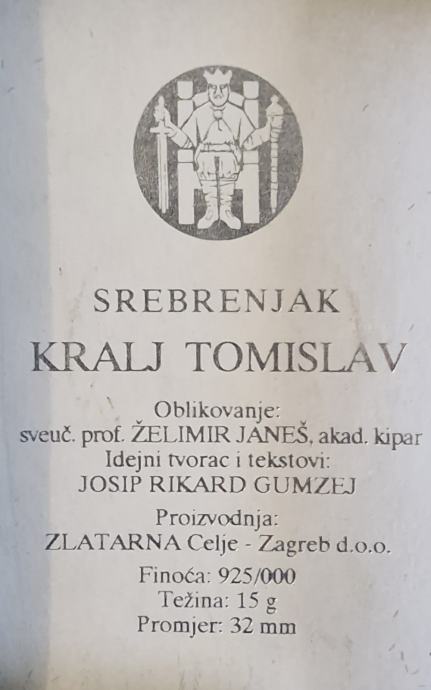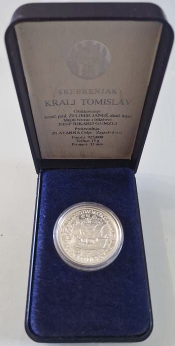 Prodajem iznimno lijepi i jako rijetki srebrnjak iz 90-tih Kralj Tomislav - Hrvatsko ratno brodovlje izrađen u Zlatarni Celje -Zagreb d.o.o. koji je 90-tih bio među najljepšim izdanim srebrnjacima od osamostaljenja RH.