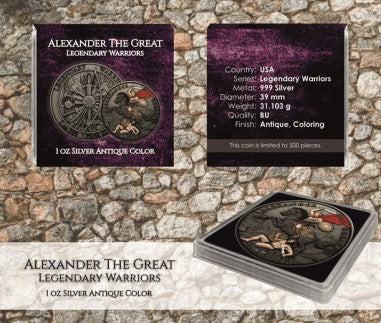 Srebrnjak Legendary Warriors - ALEKSANDAR VELIKI 1 oz, Antique obrada / Boja, limitirana naklada 500 kom RIJETKO