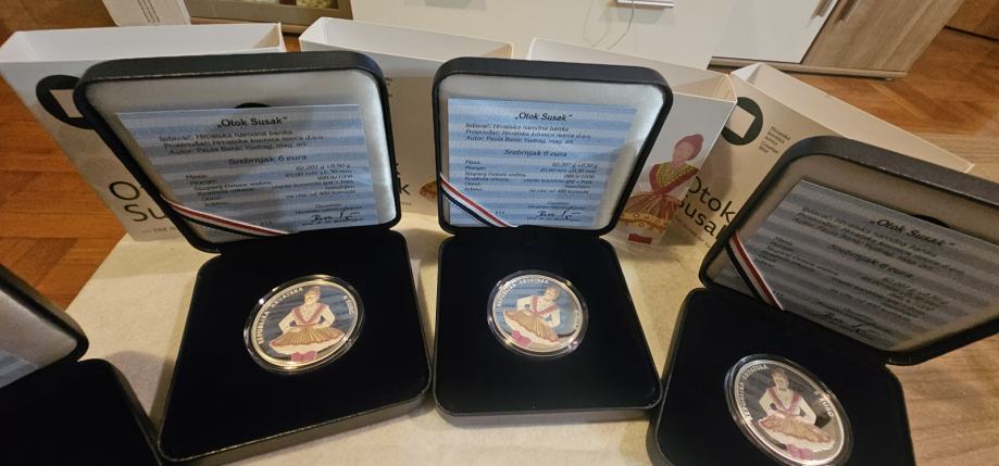 Hrvatska narodna banka u suradnji s Hrvatskom kovnicom novca izdala je po prvi put obojani srebrnjak od dvije unce (62,207 grama), nominalne vrijednosti 6 eura. Srebrnjak je dostupan u ograničenoj seriji od 400 komada. Srebrnjak izrađen od srebra čistoće 999,9/1000 prigodan je dar za posebne prigode, a dolazi u kutiji s certifikatom koji potpisuje guverner Hrvatske narodne banke.