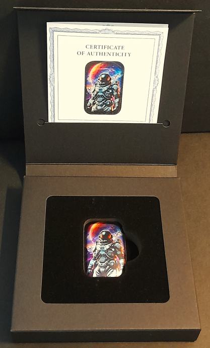 Srebrnjak The Astronaut, 2 unce, antique finish, boja, finoća 999,9/1000, izdano 250 kom, RIJETKO (broj 100/250)