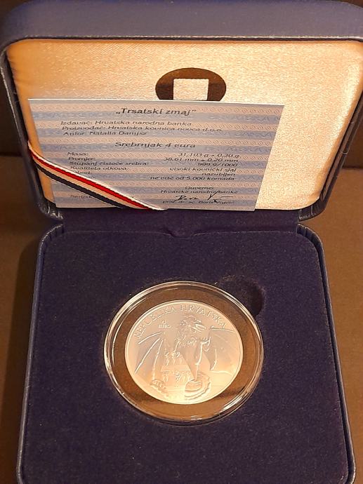 Hrvatska narodna banka u suradnji s Hrvatskom kovnicom novca izdala je srebrnjak “Trsatski zmaj”. Srebrnjak od jedne unce (31,103 grama), nominalne vrijednosti 4 eura, izrađen od srebra čistoće 999,9/1000 prigodan je dar za posebne prigode. Srebrnjak dolazi u kutiji s certifikatom koji potpisuje guverner Hrvatske narodne banke.