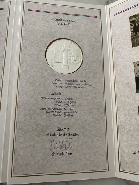 Prigodni srebrni kovani novac "Vukovar" izrađen je u specijalnoj tehnici kovanja kakvoće polirane ploče, a pušten je u prodaju 26. lipnja 1997. Mala naklada, uvijek će biti jako tražen!