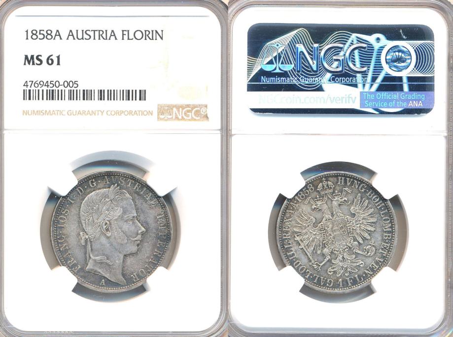 Srebrnjak1 Florin / Gulden 1858 A Franz Joseph NGC MS61