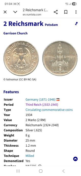 Srebro- 2 Reichsmark 1934